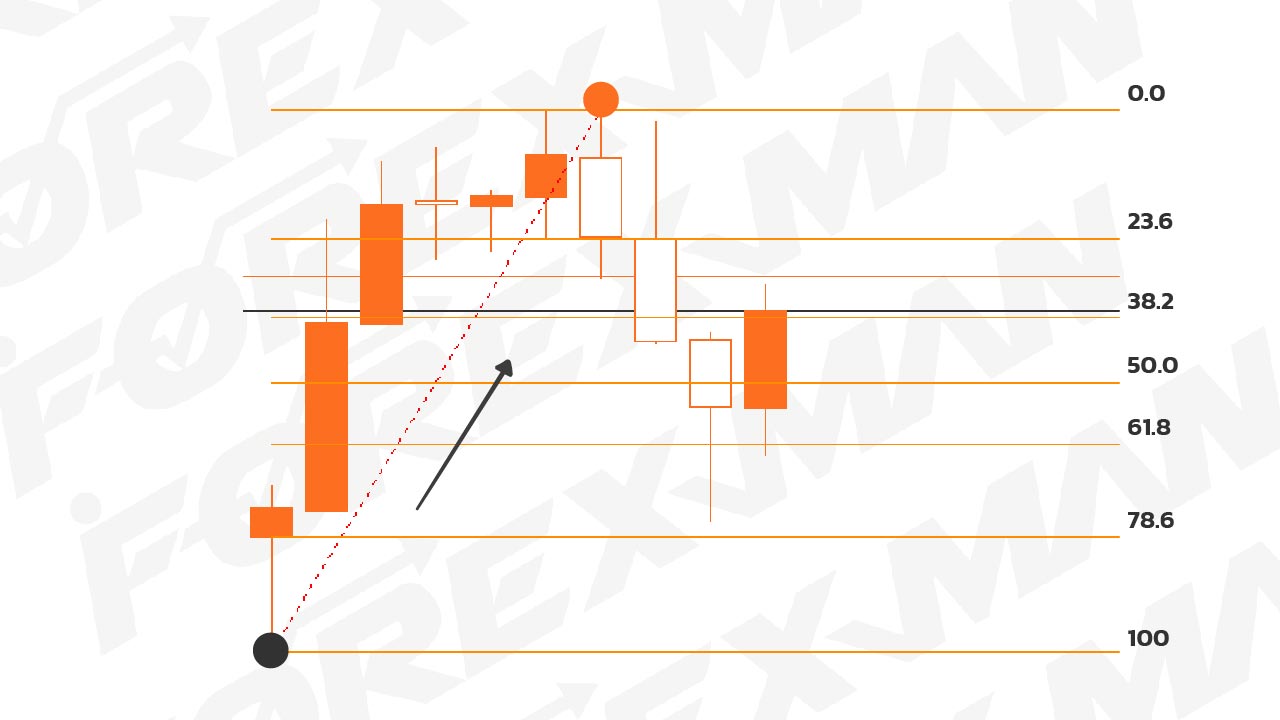 กรณีกราฟกำลังขึ้น ห้ามไล่ตามราคาเด็ดขาด เราจะใช้กลยุทธ์การรอเข้าออเดอร์ และหาจุดเข้าด้วย Fibonacci Retracement ตามขั้นตอนดังนี้ (ใช้คู่เงิน และ Timeframe ใดก็ได้)