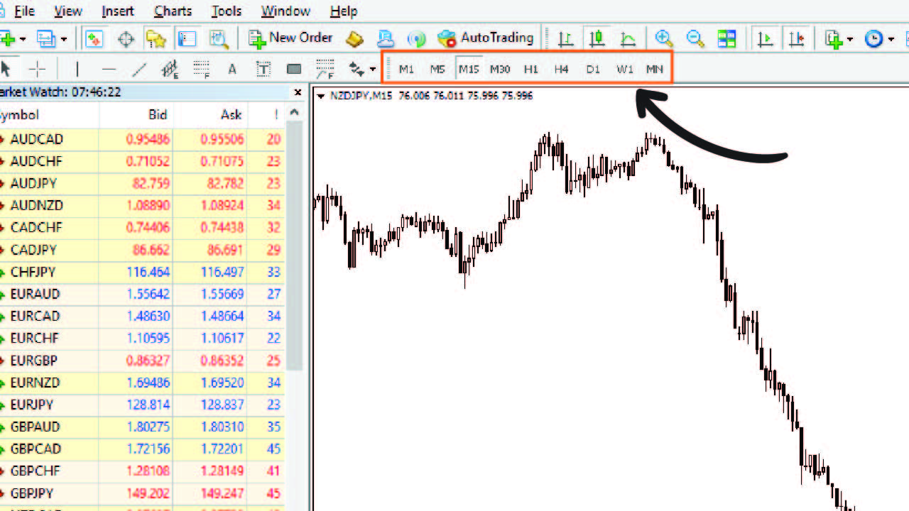 Timeframe อยู่ตรงไหนในโปรแกรมเทรด (MT4)